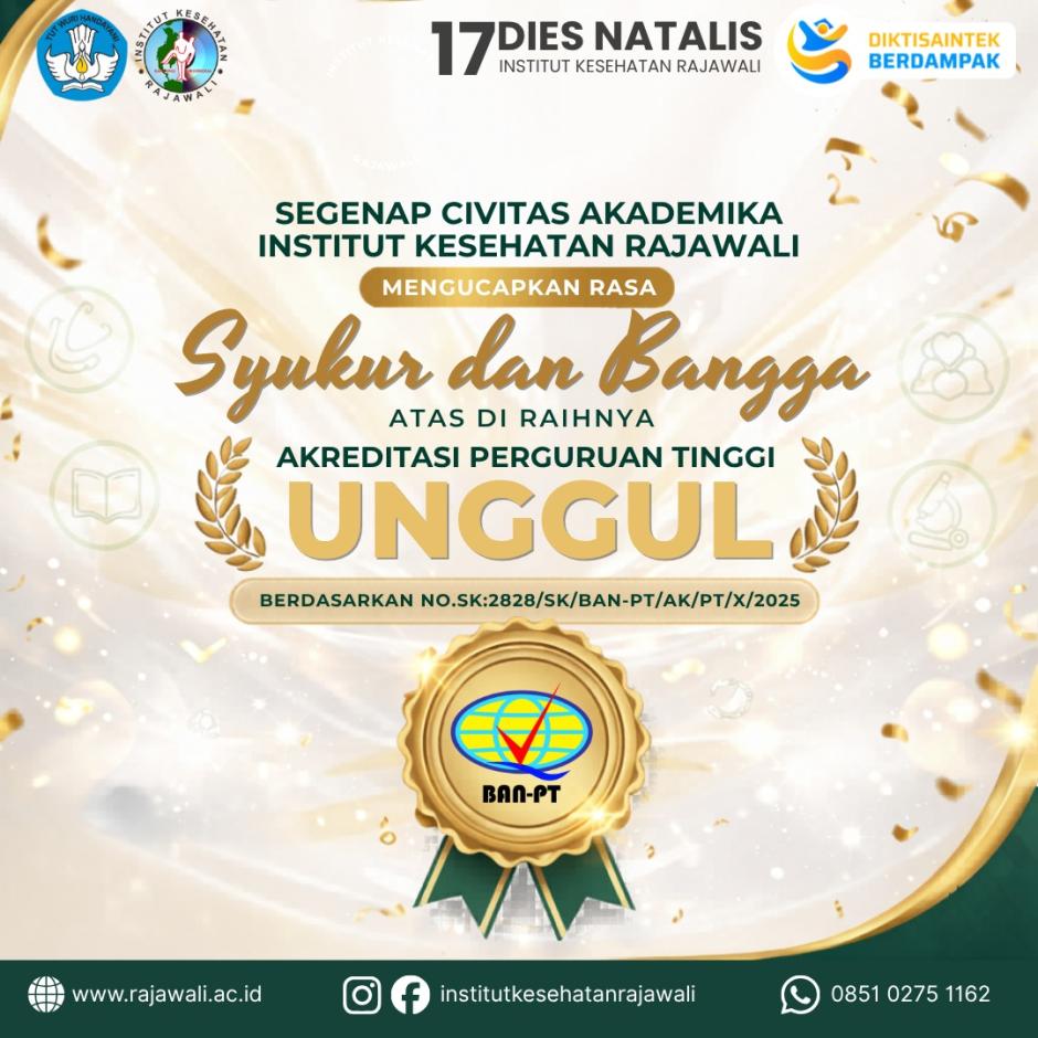 Terimakasih atas dukungan dan doa segenap civitas akademika IKes Rajawali, LLDIKTI IV, Organisasi Profesi PPNI, APNI, IBI, APIKIND, PALTEKI, APTLM, PAFI, IAI, PERSAGI, ISAGI, RS Rajawali, Alumni, Mitr